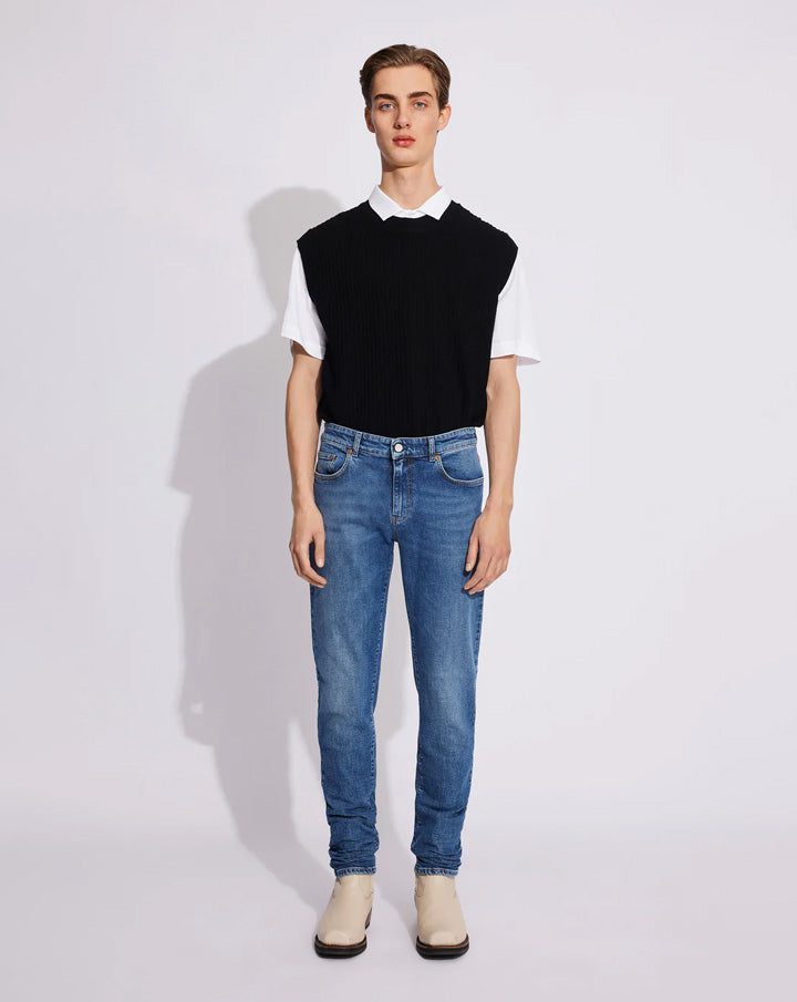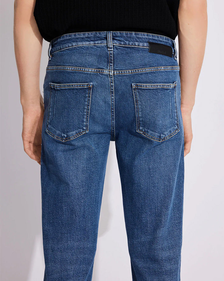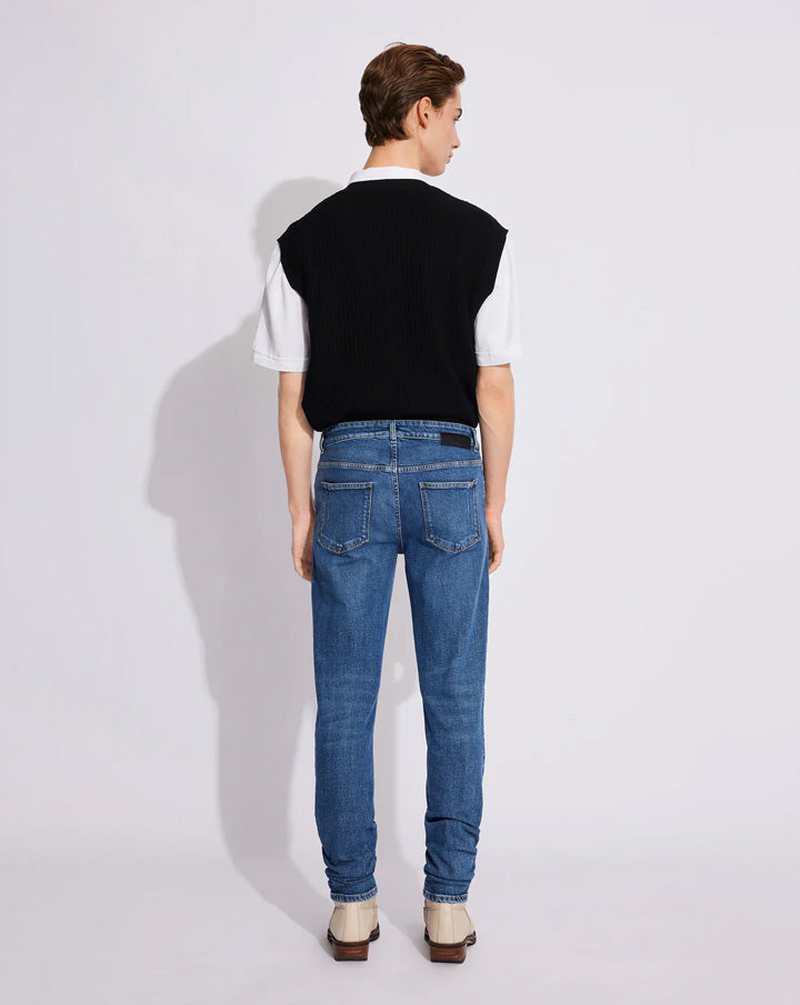 Dean is a pair of classic slim-fit jeans with mid-waist, zip fly, and slim leg. The jean's construction comes with five pockets and five belt loops. Features branded logo buttons and rivets, leather labels, and our signature dart on the back pockets.
