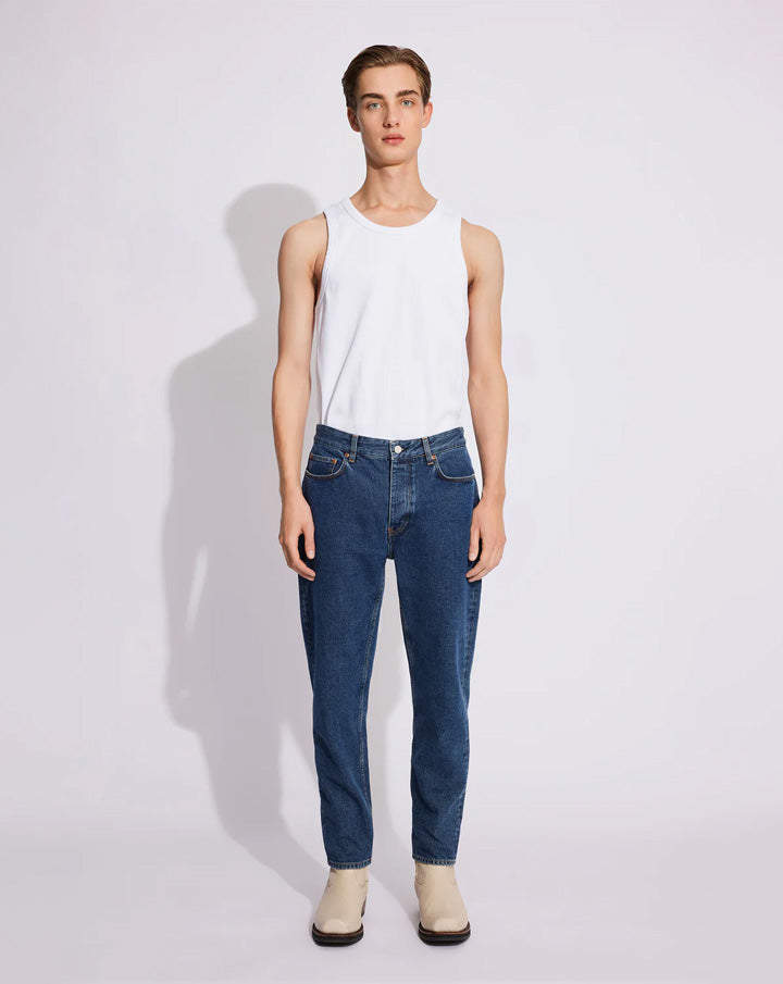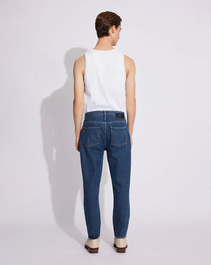 Ben is a pair of carrot-shaped jeans with a mid-waist, button fly and a cropped, tapered leg.