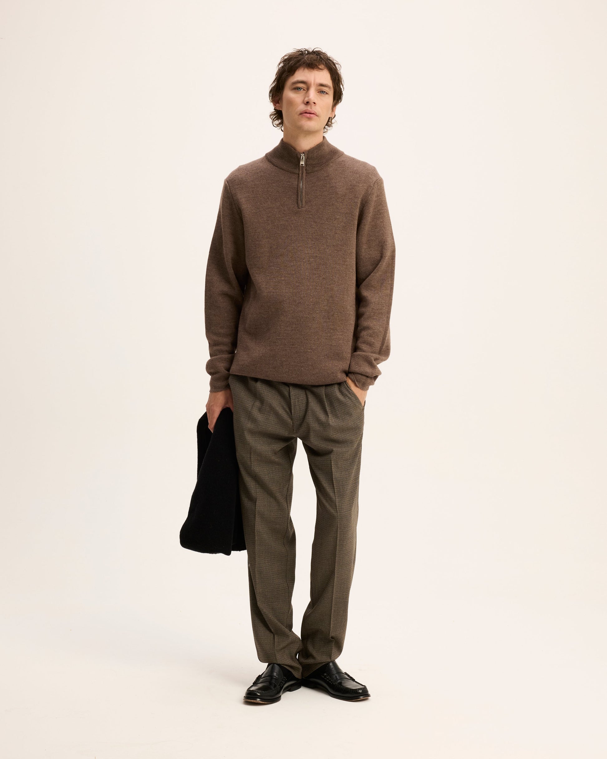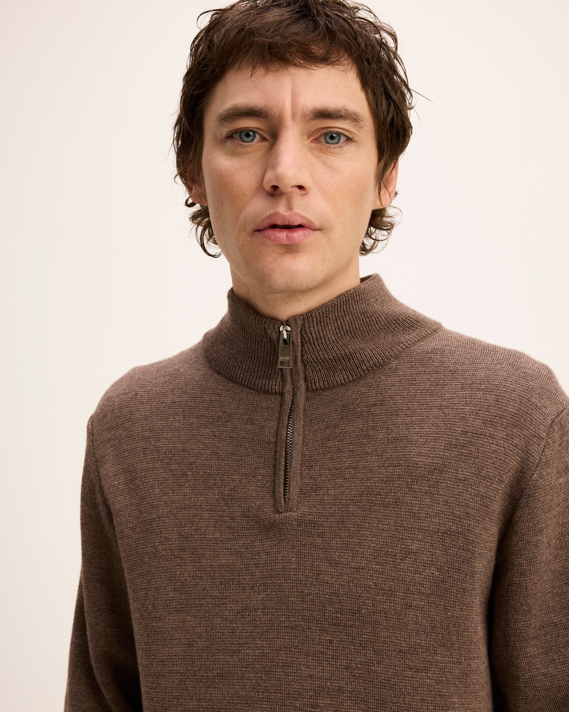 Kamark is a stylish and versatile addition to any wardrobe. The Kamark, made from 50% wool, along with its fine knitting structure and the half zipper, gives it a luxurious and comfortable feel. The slightly higher collar adds a touch of elegance to any outfit.