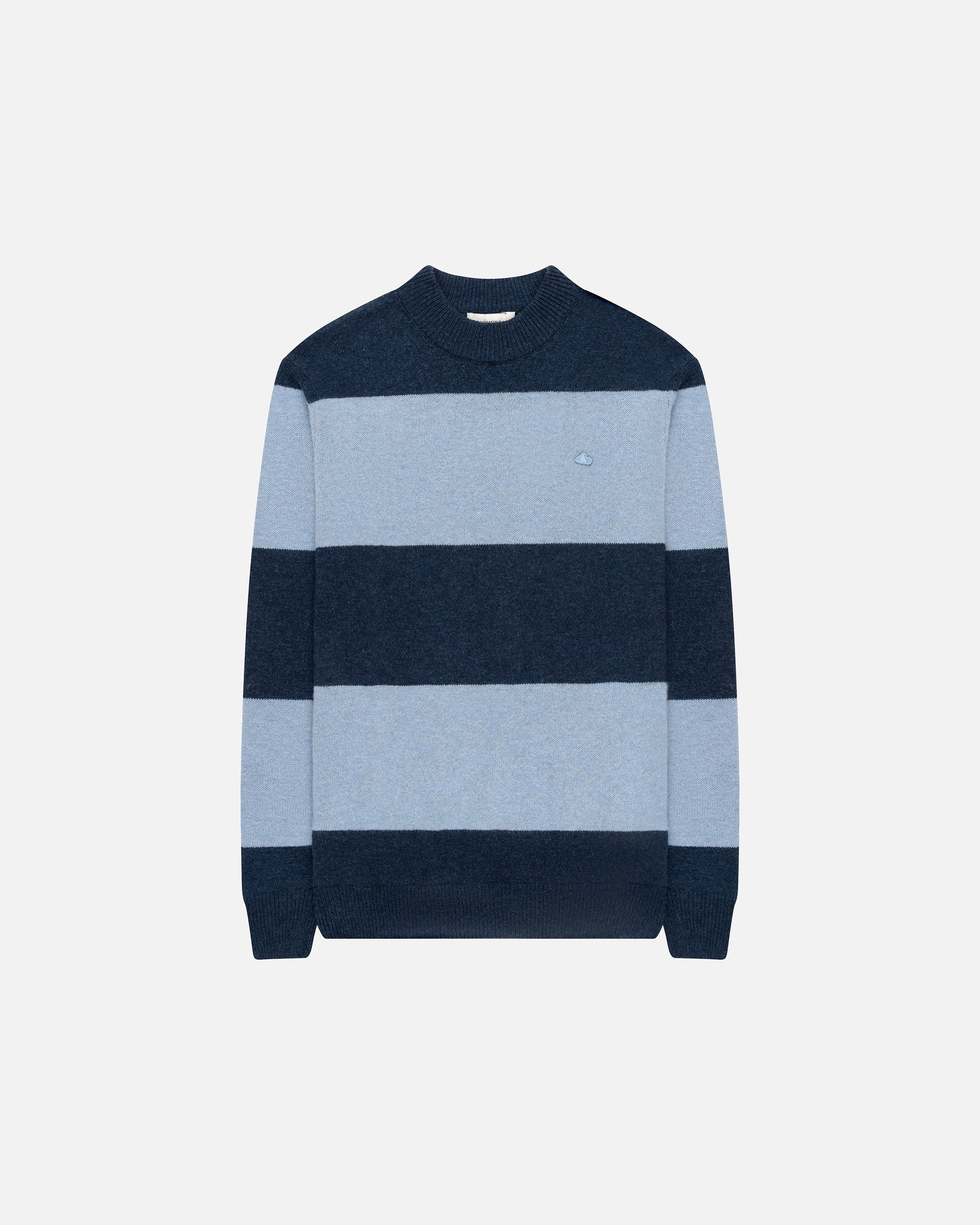 The KYLO, is a knitted sweater with wide horizontal stripes and finished with our iconic cloud logo on the chest and made from the best Italian wool blend with a mid-weight knitting. The Kylo has a comfortable fit, which makes it suitable for all seasons and easy to style. Produced in Italy and designed in Rotterdam, quality is guaranteed.