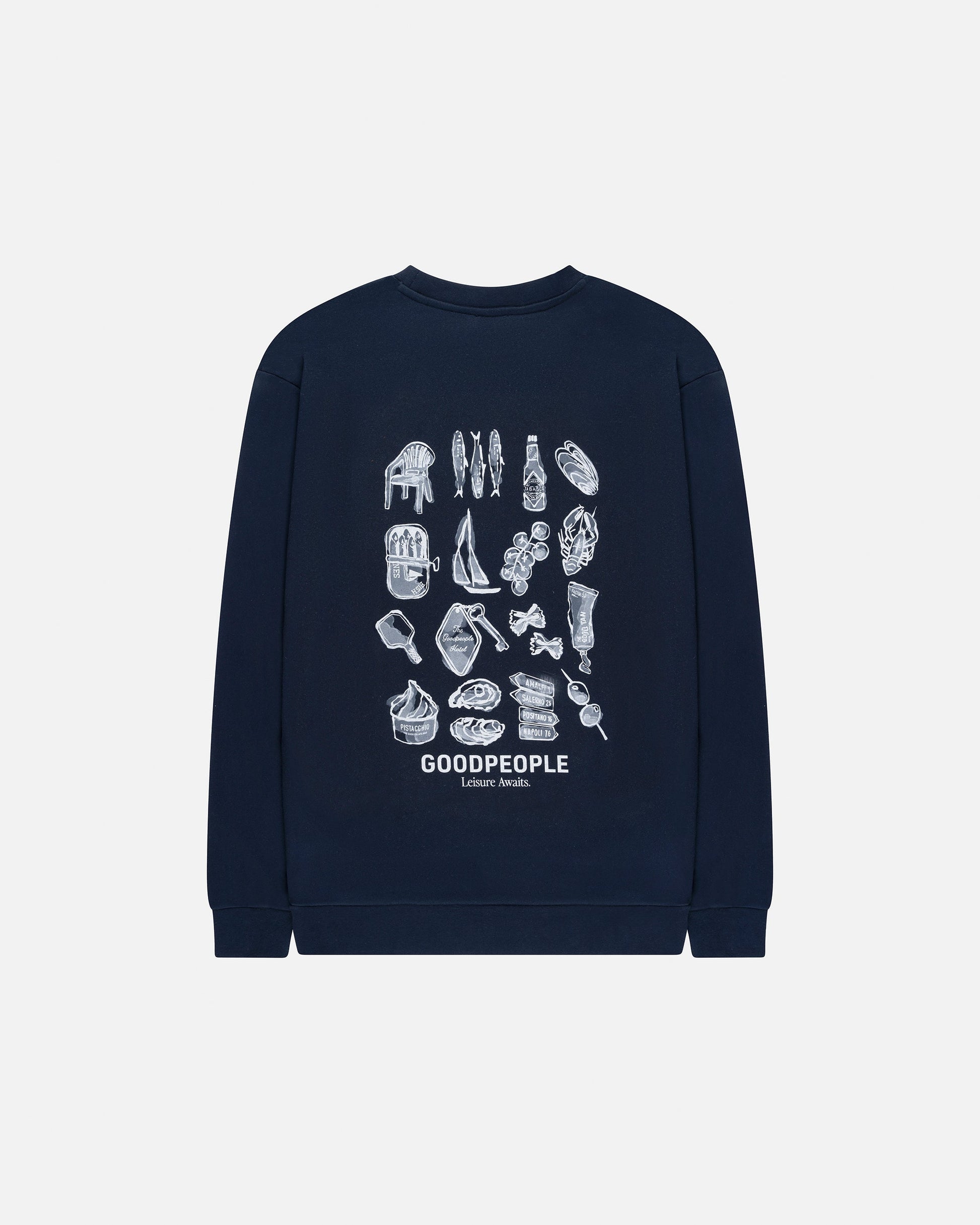 This sweater features a hand-drawn backprint inspired by travel moments and everyday details. The artwork adds character without being loud, keeping the look clean and easy to wear. Made from soft 100% cotton, the fabric feels comfortable and works well for daily use throughout the season.