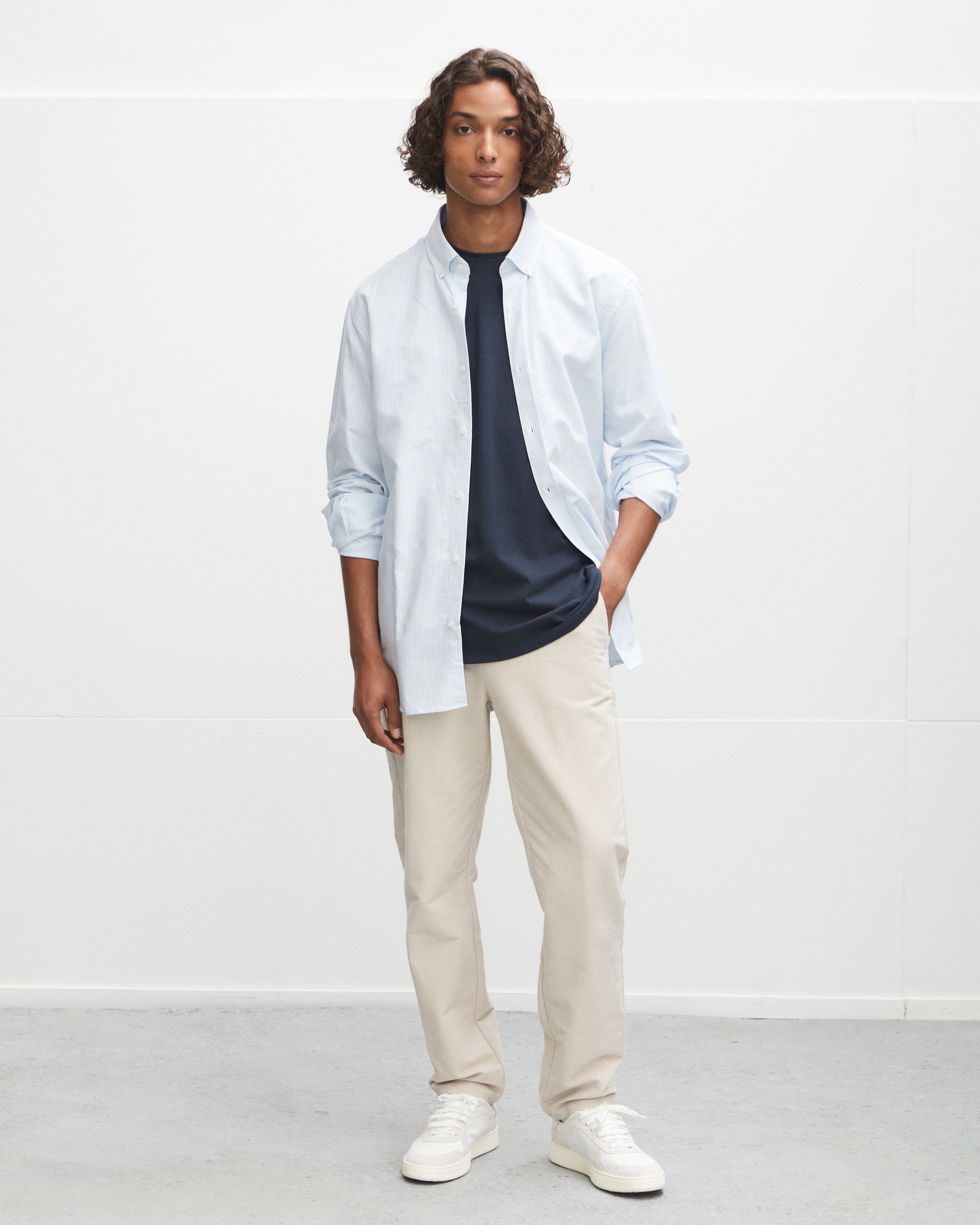 The Essential - Oxford of The GoodPeople is a light blue striped shirt. Simple and clean. That's all you need sometimes. Keep it concealed or roll the sleeves after hours to bring a touch of character to your outfit. Wear yours to formal days at the office or casual days in the weekend! It's your choice!