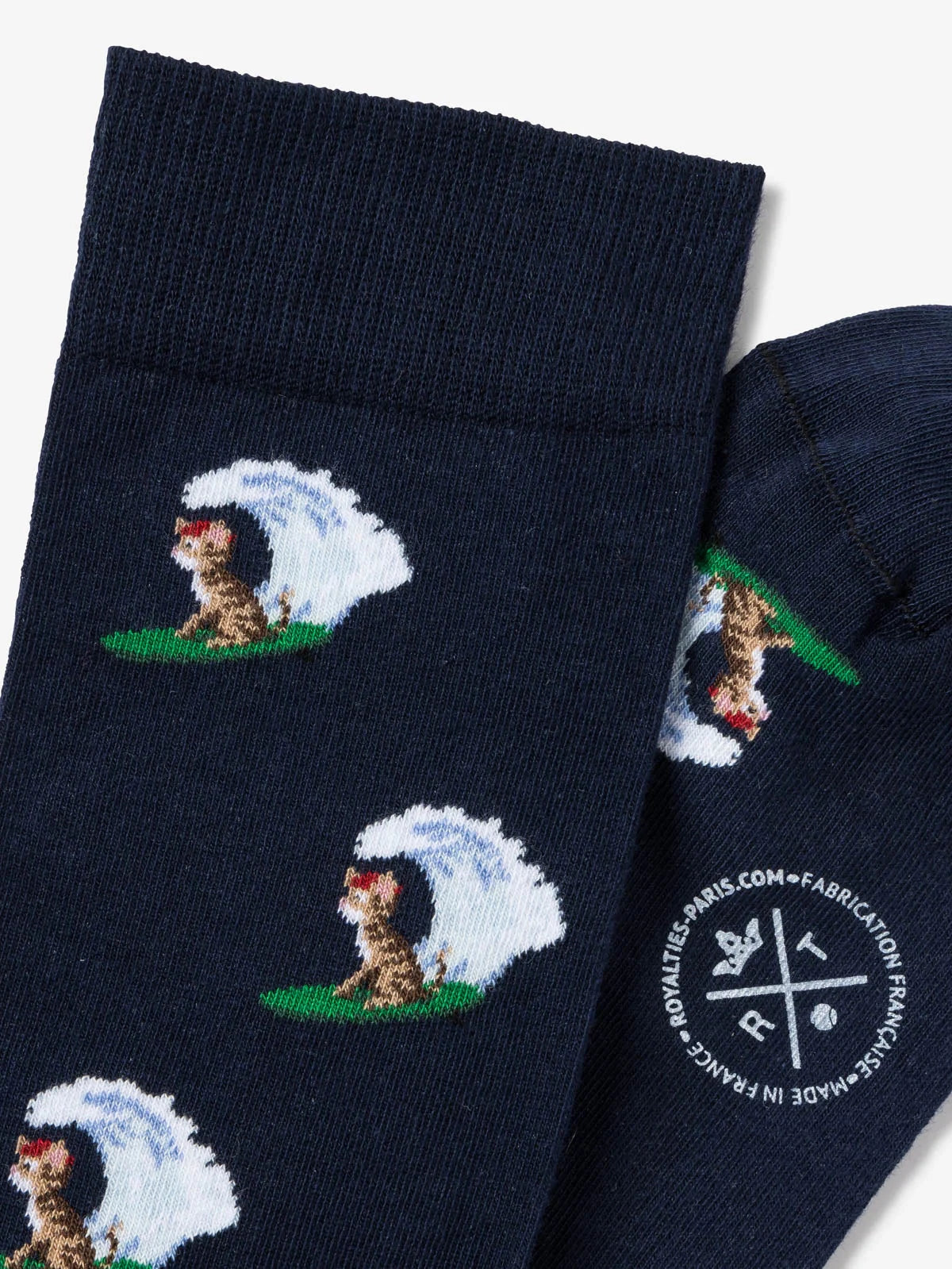Dwell on the exceptional precision of this design and admire the details of its striped fur, its cap and the foam of the waves.More than just a drawing, it’s a story told at the tips of your toes!