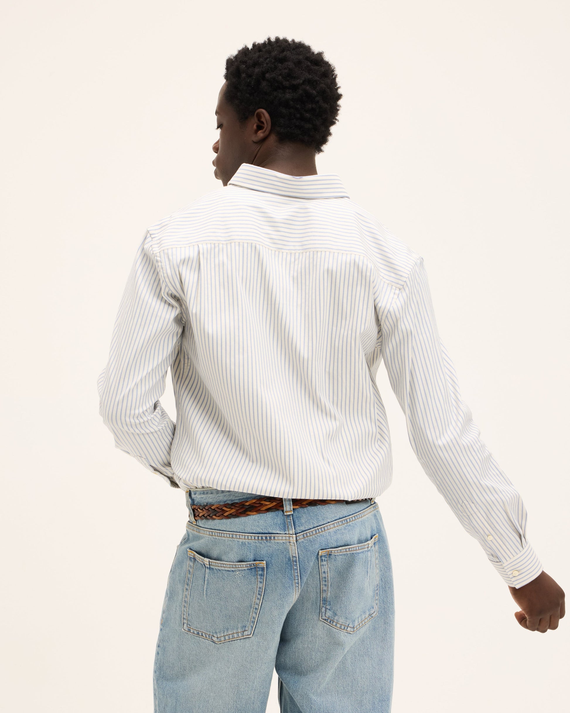 The Seinfeld Cotton Striped Shirt features a fine stripe that gives the shirt a clean, classic look. The fabric has a smooth handfeel with a slight stretch, allowing it to move comfortably with the body while keeping its shape throughout the day. A relaxed fit making it easy to wear tucked in or open over a T-shirt. Finished with subtle detail.