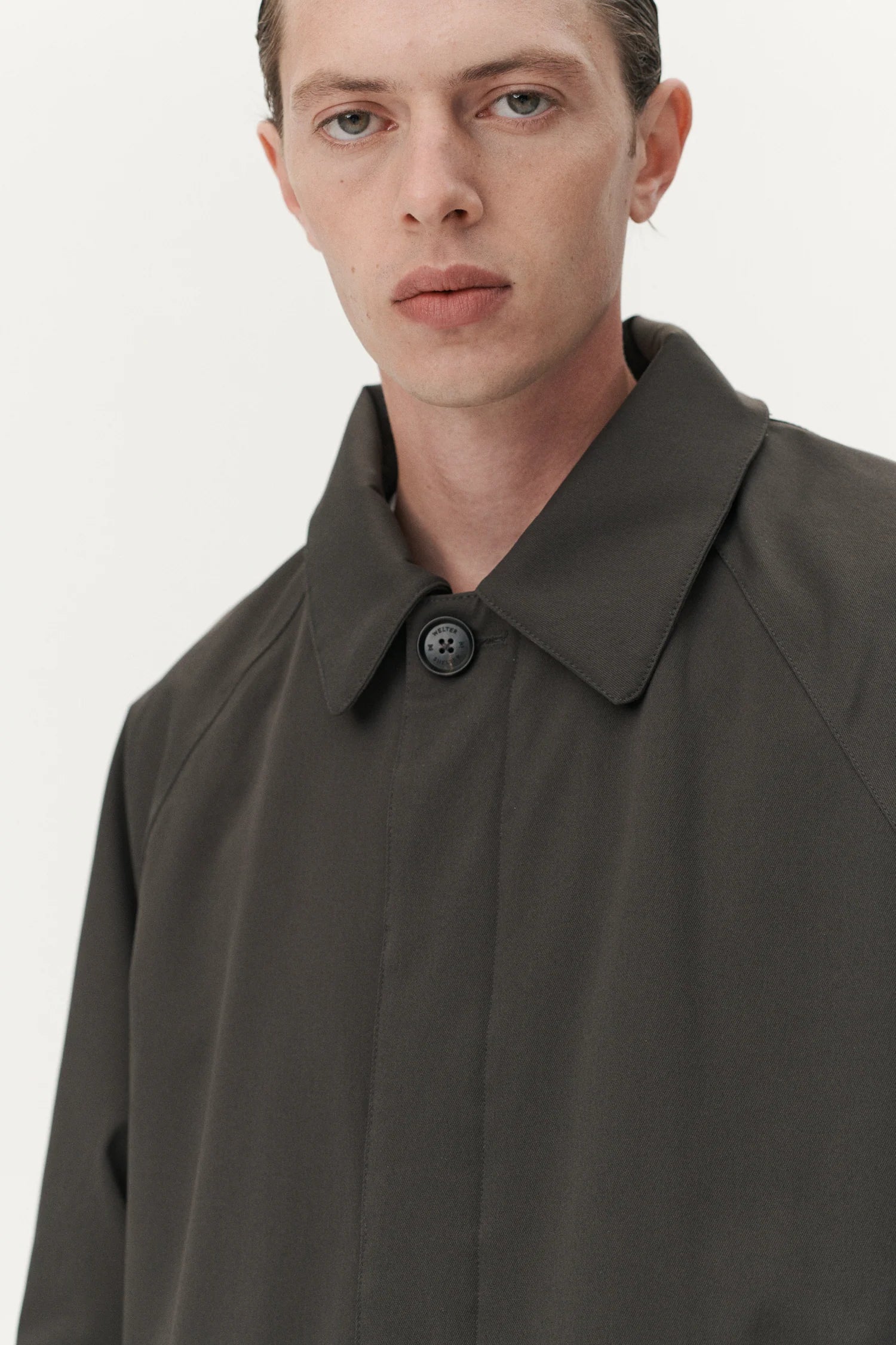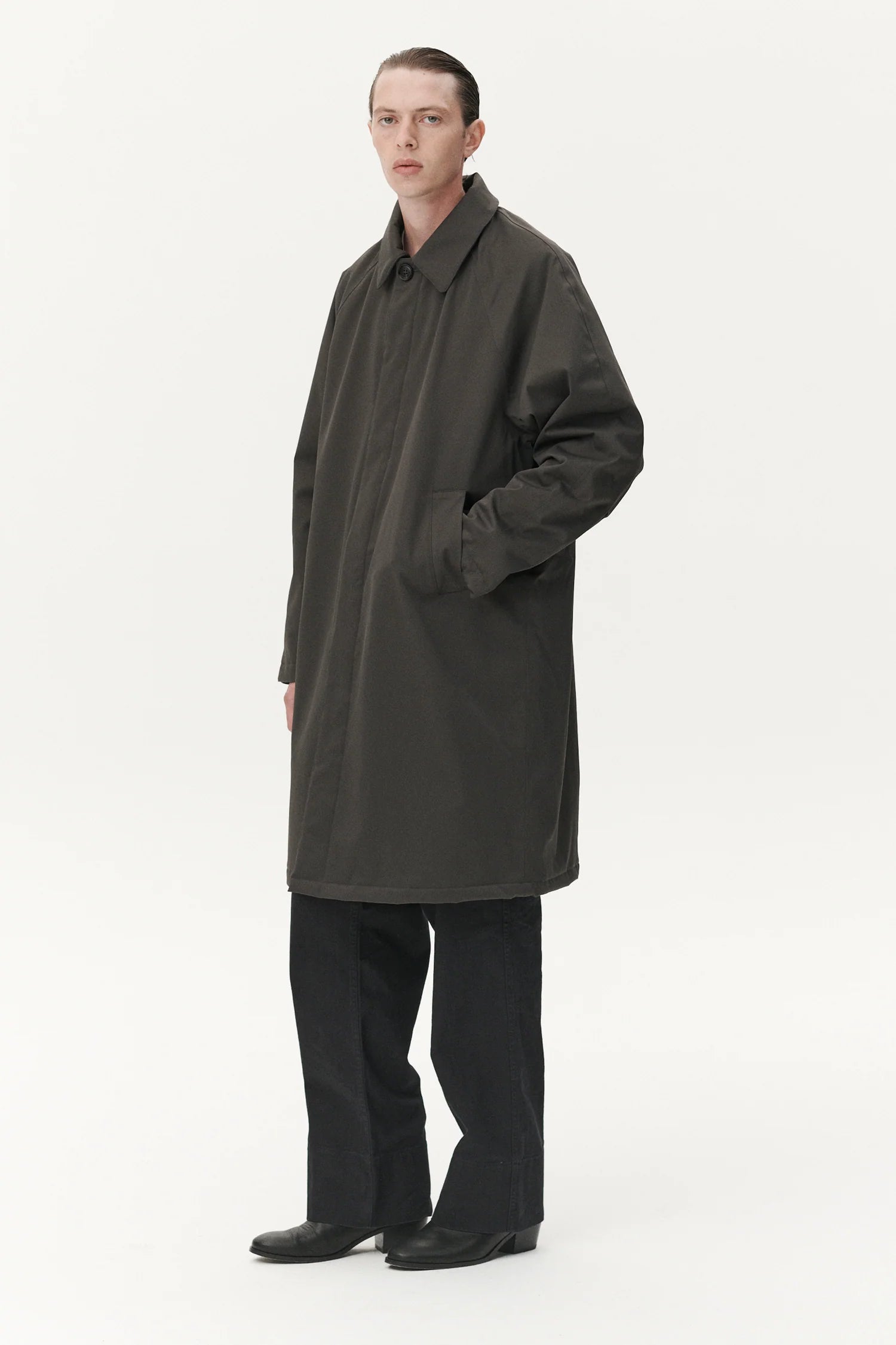 The Job-A Carcoat showcases a generously proportioned silhouette, featuring dropped shoulders and a linear cut reminiscent of a trench coat. Crafted from the exquisite fabric, renowned for its serge structured composition, this garment embodies durability and sophistication. rendering it absolutely waterproof and breathable. Furthermore, the outer serge fabric is fortified with a DWR (Durable Water Repellent) coating, amplifying its resistance to moisture. The resulting cloth is virtually indestructible, ensuring its longevity for years to come.