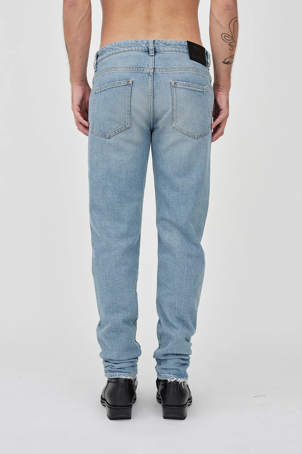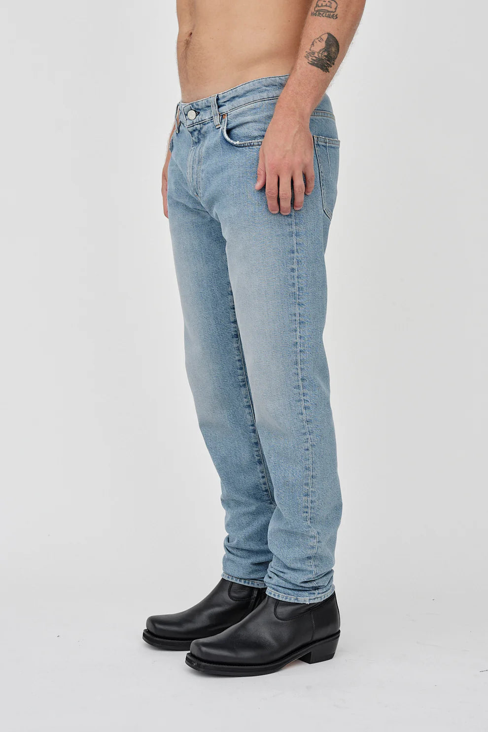 Dean is a pair of classic slim-fit jeans with mid-waist, zip fly, and slim leg. The jean's construction comes with five pockets and five belt loops. Features branded logo buttons and rivets, leather labels, and our signature dart on the back pockets.