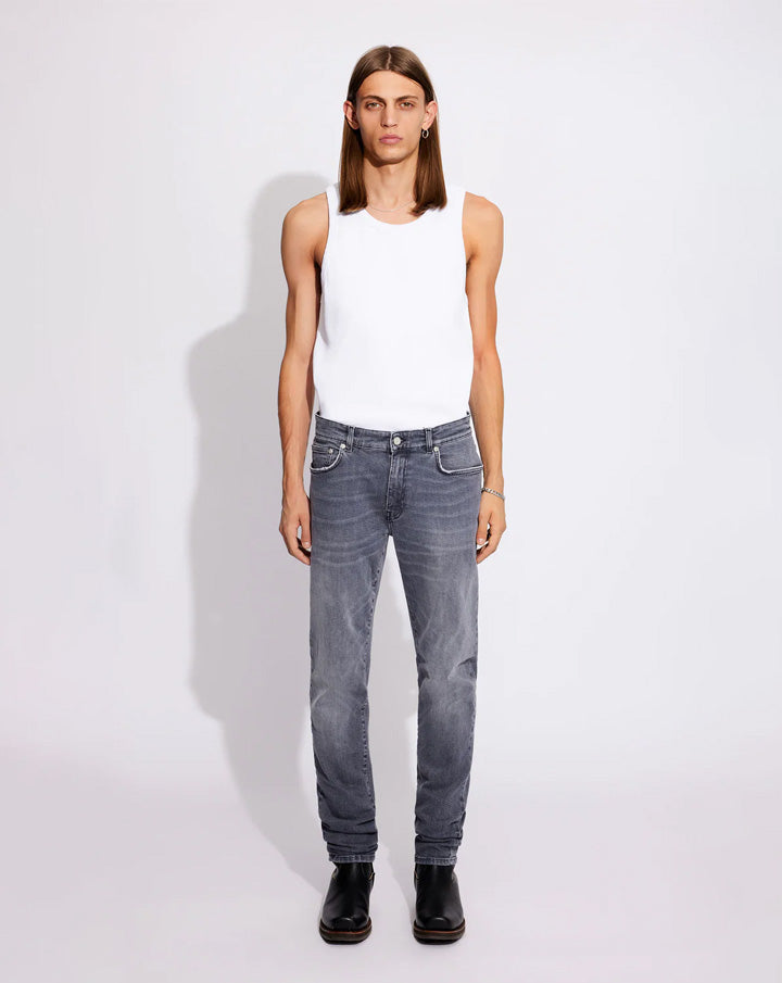 Dean is a pair of classic slim-fit jeans with mid-waist, zip fly, and slim leg. The jean's construction comes with five pockets and five belt loops. Features branded logo buttons and rivets, leather labels, and our signature dart on the back pockets.
