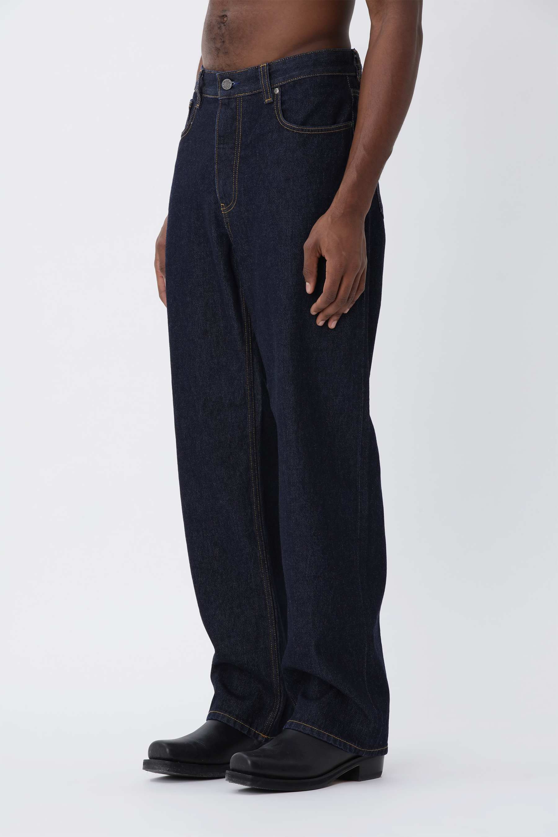 The Steve D. Blue Jeans are a 90’s-inspired style with a loose fit, mid waist, and relaxed straight leg. Crafted from 100% organic cotton denim, they feature a button fly, five-pocket construction, and branded hardware. Finished in a rich blue wash with subtle worn details for a classic vintage look.